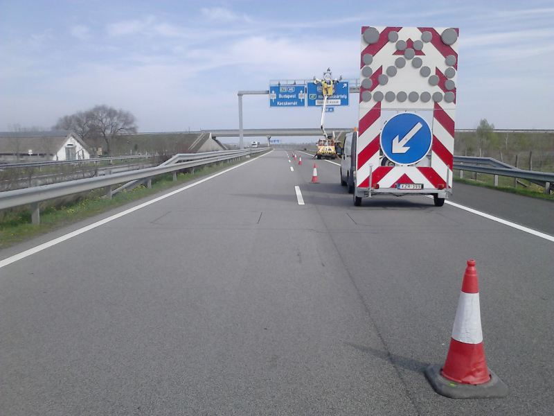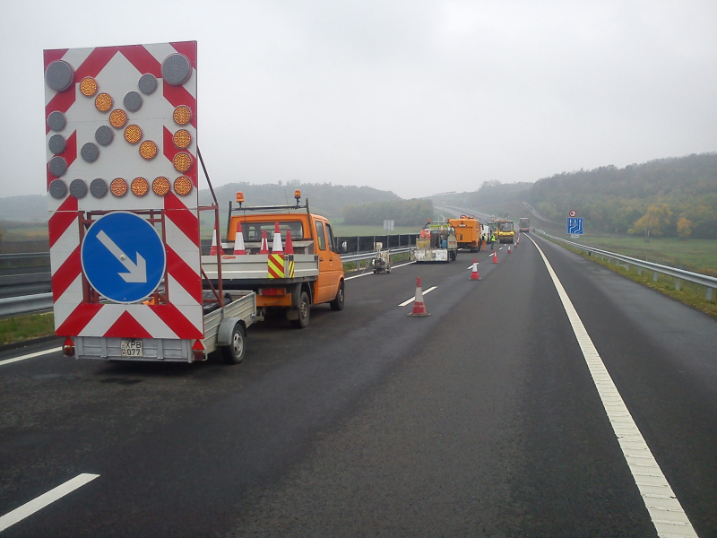 vállaljuk a forgalom ideiglenes elterelését a szükséges eszközökkel, mobil táblákkal és LED-es figyelmeztető berendezésekkel. Tapasztalt csapatunk az előírások szerint dolgozik, akár hatósági jóváhagyással készült tervek alapján is.